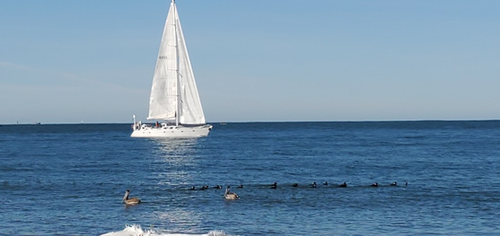 There was a sailboat with pelicans and other birds I would have chased if they weren’t in the water (I don’t do water).