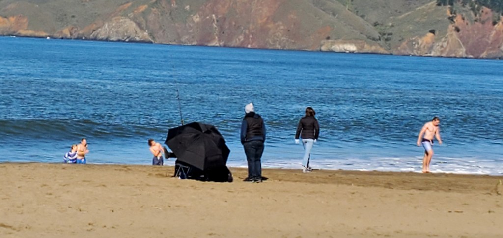 It was a clear, sunny day with no wind, and those days can be hard to come by in San Francisco. Boy was it interesting! There were people in bathing suits. In. The. Water. In the middle of winter!